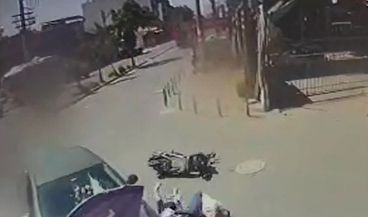 Manisa'nın Turgutlu ilçesinde baba ve oğlunun bulunduğu motosikletle bir otomobilin çarpışma anı güvenlik kamerasına yansıdı. Görüntülerde baba ve oğlunun, çarpışmanın etkisiyle takla atarak ters dönen otomobilin altında kalmaktan son anda kurtuldukları görüldü.