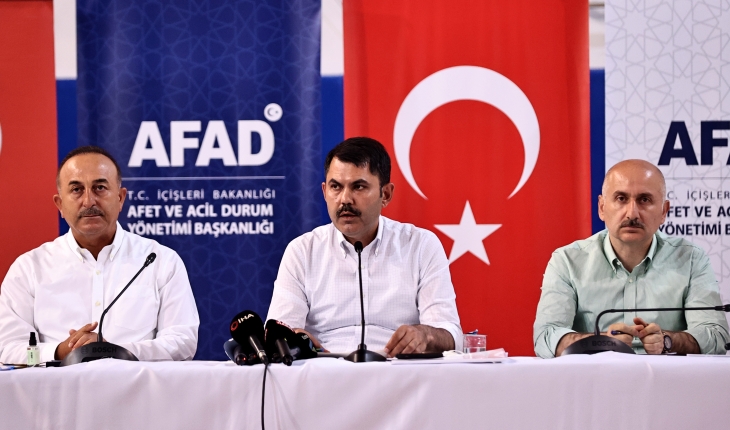 Dışişleri Bakanı Mevlüt Çavuşoğlu, Çevre ve Şehircilik Bakanı Murat Kurum ve Ulaştırma ve Altyapı Bakanı Adil Karaismailoğlu, Antalya'nın Manavgat ilçesinde AFAD Koordinasyon Merkezi'ndeki değerlendirme toplantısı öncesi açıklama yaptı.