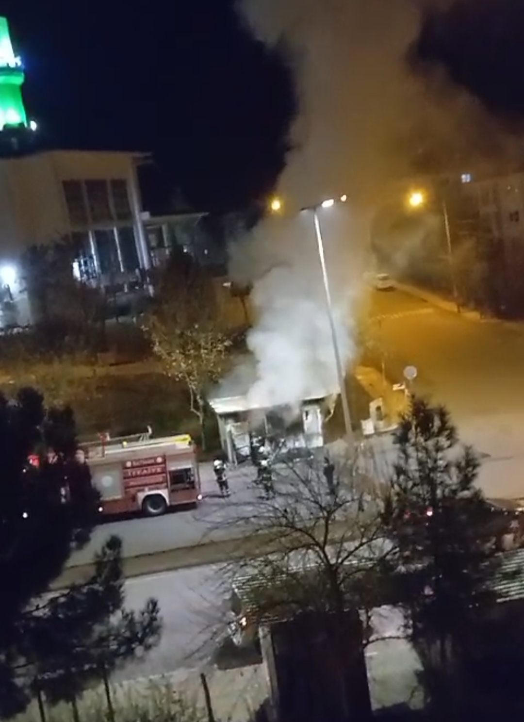 Çıkan yangın cep telefonu kamerasına yansırken, çevredekilerin ihbarıyla olay yerine itfaiye ve polis ekipleri sevk edildi. Yangın, itfaiye ekiplerinin müdahalesi ile söndürüldü.
