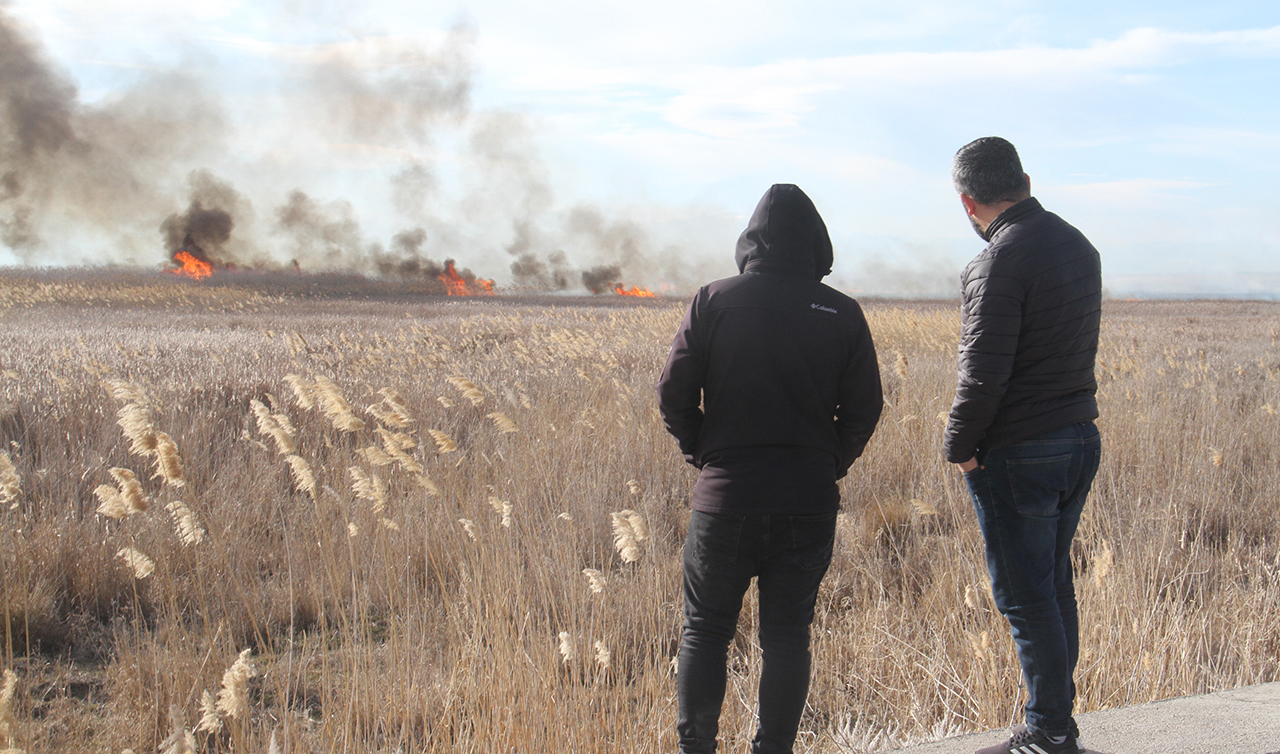 İtfaiye ekipleri kıyıya uzak mesafede çıkan yangına, alanın balçık ve bataklık olması dolayısıyla giremeyince alevlere müdahalede bulunamadı.