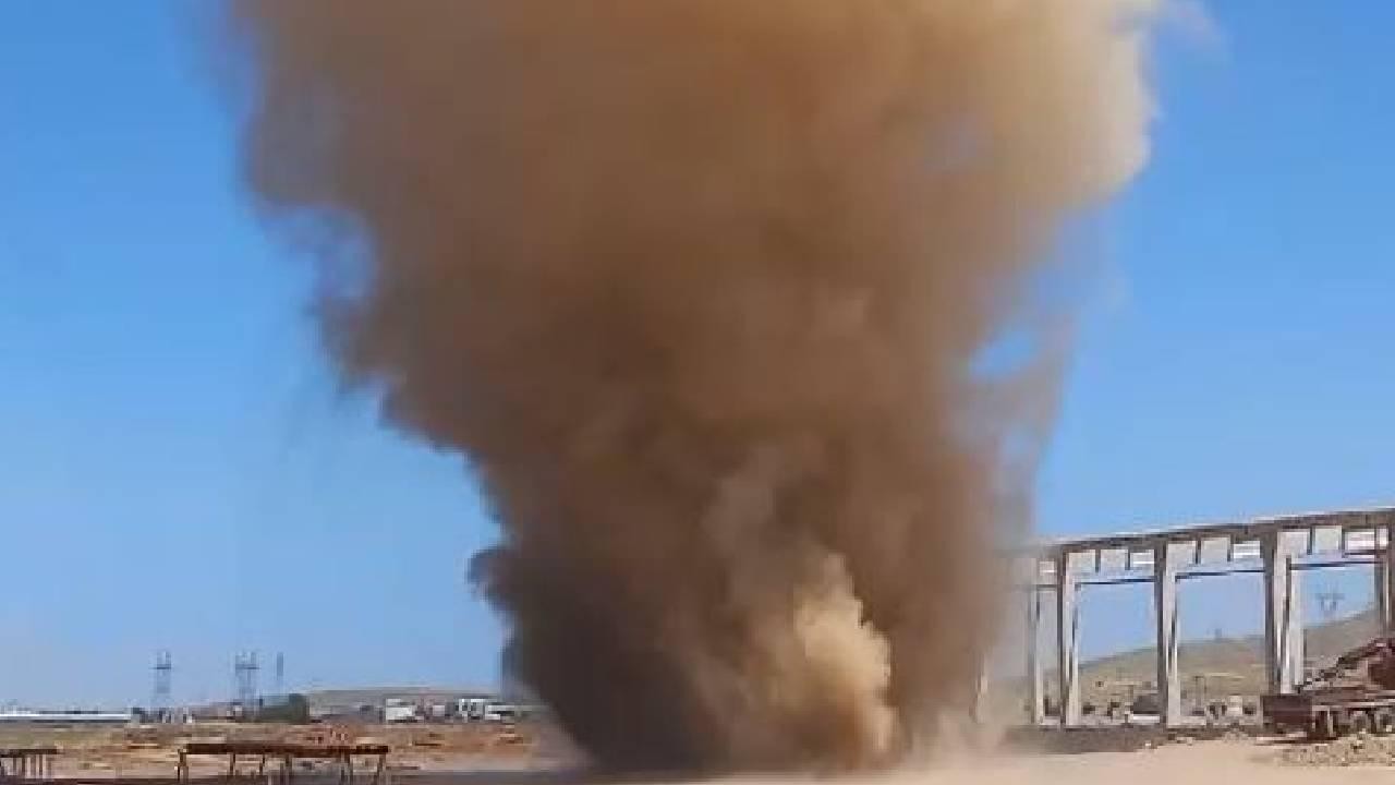 Bitlis'te bir iplik fabrikasına ait inşaat alanında meydana gelen ve yaklaşık 1 dakika süren hortum, cep telefonu kamerasıyla görüntülendi.