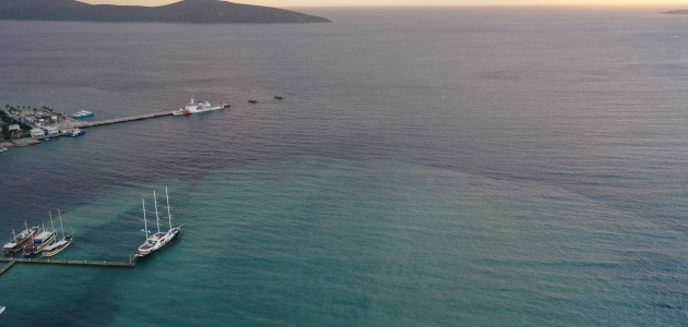 Muğla'nın Bodrum ilçesinde sağanağın ardından yağmur sularının getirdiği çamur nedeniyle denizin rengi değişti.
