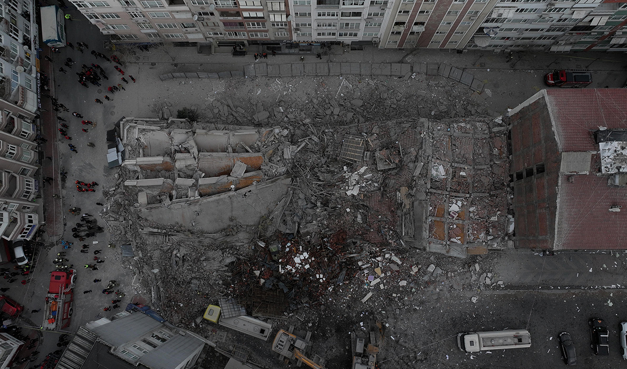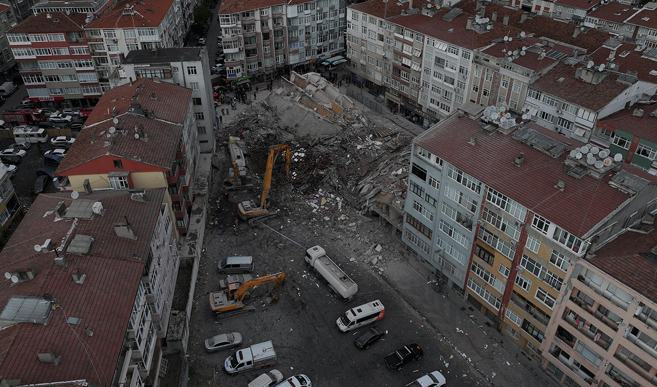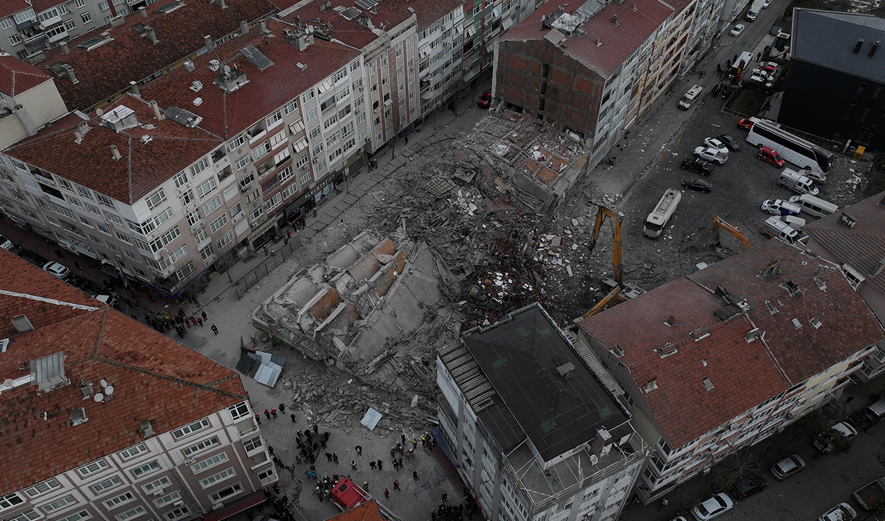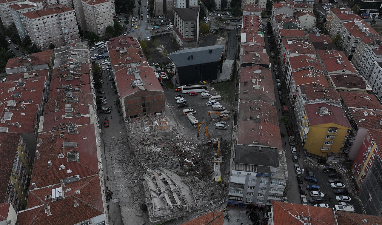 Ekiplerin olay yerindeki çalışması sürüyor. Bu arada, binanın çökme anı çevredeki güvenlik kameralarınca kaydedildi.