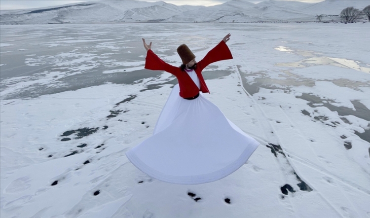 Ardahan Üniversitesi (ARÜ) Teknik Bilimler Meslek Yüksekokulu Öğretim Görevlisi Özkan Karadavut, tanıtım için Ardahan-Kars sınırlarındaki Çıldır Gölü'nün buzla kaplı yüzeyinde sema gösterisi gerçekleştirdi.