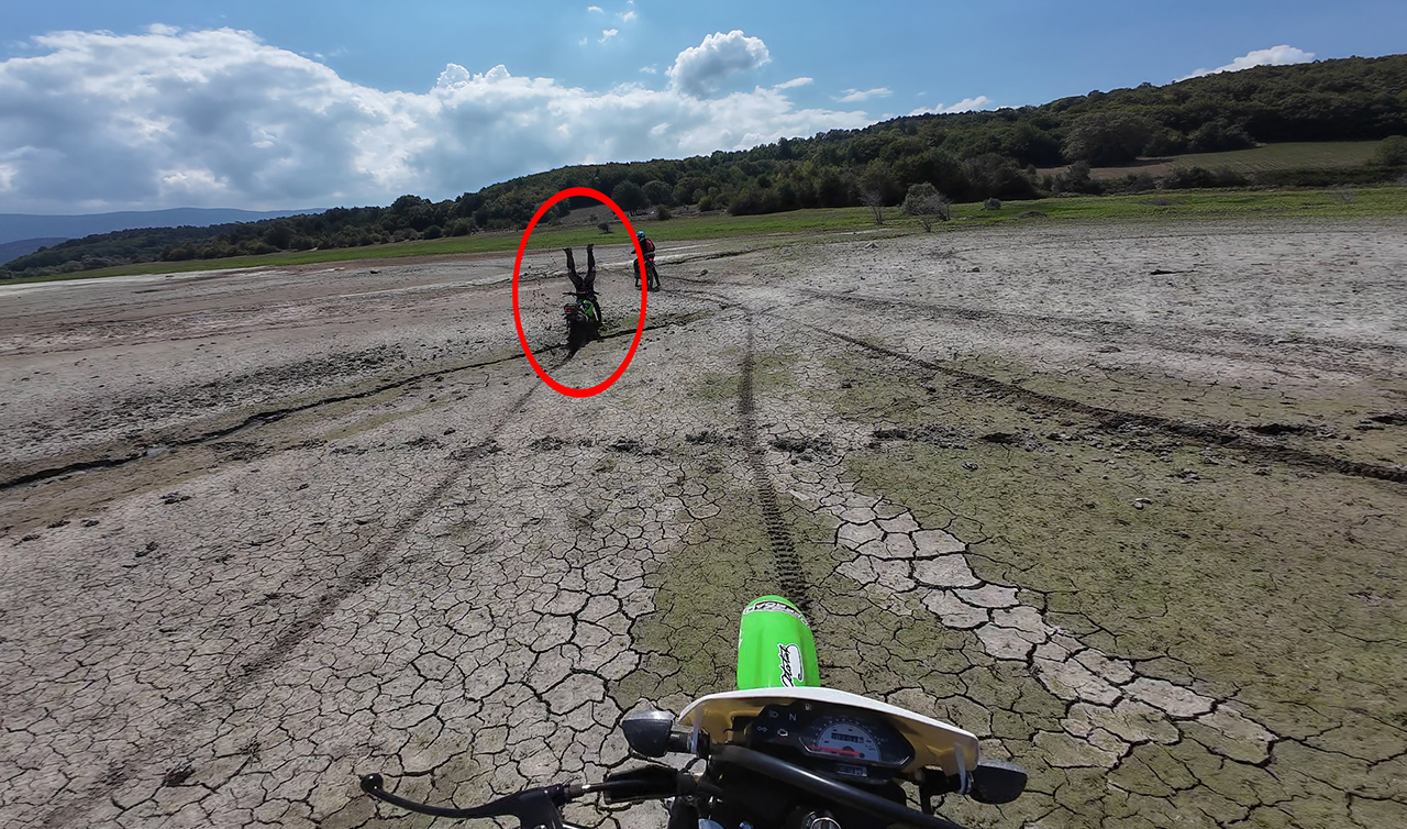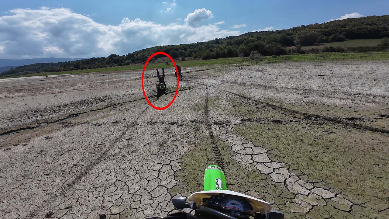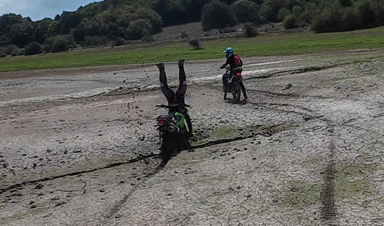 Tanyar, motosikletin üzerinden takla atarak uçtu. O anlar, arkasından gelen arkadaşının kask kamerasına yansıdı. Sürücü ve onun yara almadığını gören arkadaşları kahkahaya boğuldu. 3 arkadaşın, çamura saplanan motosikleti dakikalarca uğraşıp güçlükle çıkardığı anlar da kameraya yansıdı.