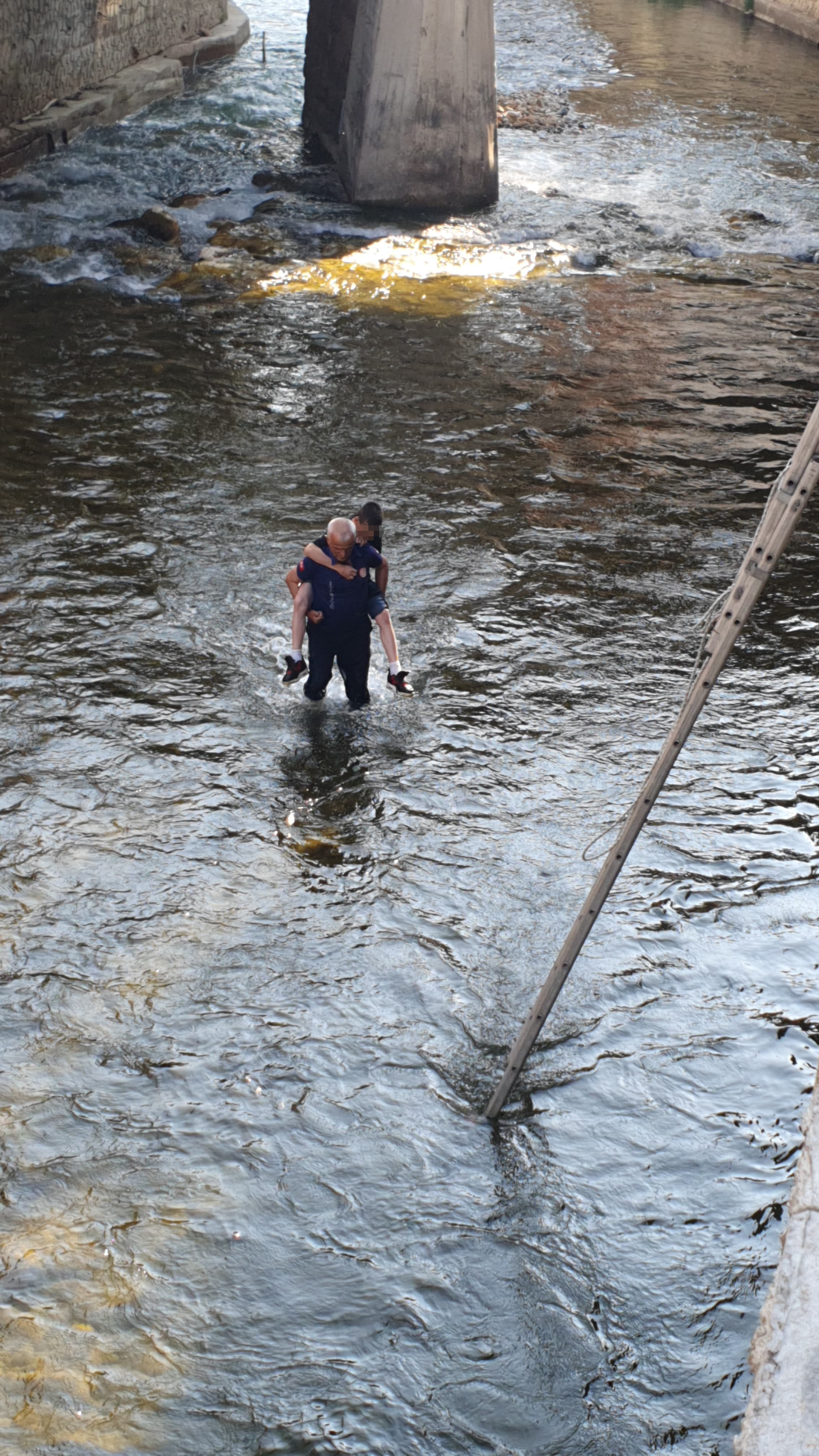 Gümüşhane'de Harşit Çayı'na düşen topunu almak isterken mahsur kalan 13 yaşındaki çocuk, itfaiye ekiplerince kurtarıldı.