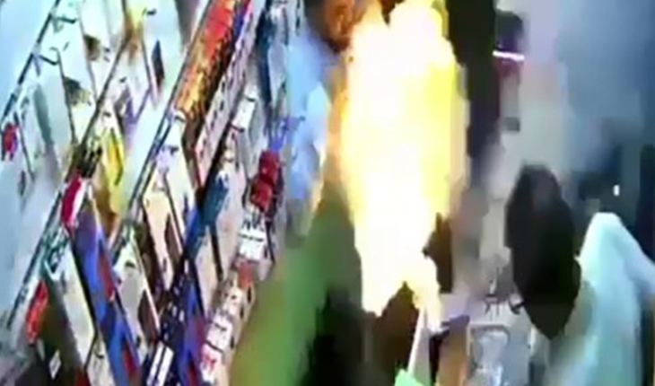 İstanbul Fatih'te tamire getirilen cep telefonunun bataryası adeta bomba gibi patladı. Alev topuna dönen cep telefonunun patlama anı kameraya yansıd