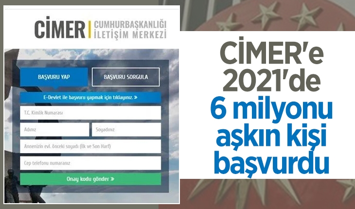 Hükümetin çalışmaları ve kamu idaresinin eylem ve işlemleri hakkında vatandaşların görüş, istek, şikayet, öneri ve teşekkürlerini ilettiği Cumhurbaşkanlığı İletişim Merkezine (CİMER) geçen yıl 2020'ye göre yüzde 4 artış ile 6 milyon 100 bin kişi başvurdu.