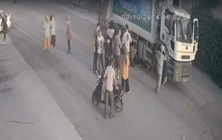 Kaza, sabah saatlerinde, Yüreğir ilçesi Levent Mahallesi 2046 Sokak'ta meydana geldi. Konteynerdeki çöpü aldıktan sonra hareket eden Ferhat D. yönetimindeki 01 DRK 63 plakalı çöp kamyonu, yolda yürüyen Gamze Bayram'a çarptı. Kamyonun üzerinden geçtiği kadına, çevredekiler müdahale etti. Sürücünün hemen durdurduğu kamyonun altından çıkarılan Gamze Bayram, kaldırıldığı hastanede tedaviye alındı. Kaza güvenlik kamerasına yansırken, şoför Ferhat D. gözaltına alındı.