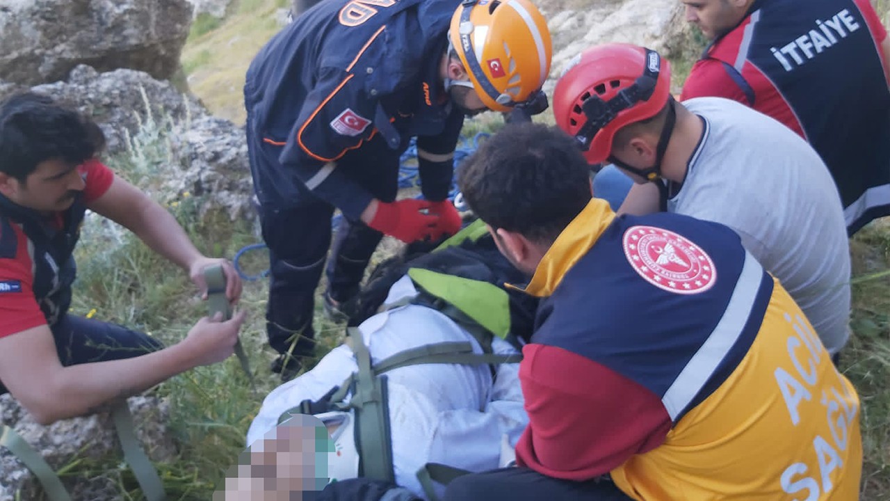 Mardin'de yürürken kayalık alana düşüp yaralanarak mahsur kalan kişi, ekiplerce kurtarıldı.