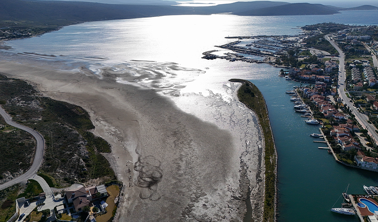 Alaçatı Port mevkisindeki çekilme yaklaşık 300 metreye ulaştı.
