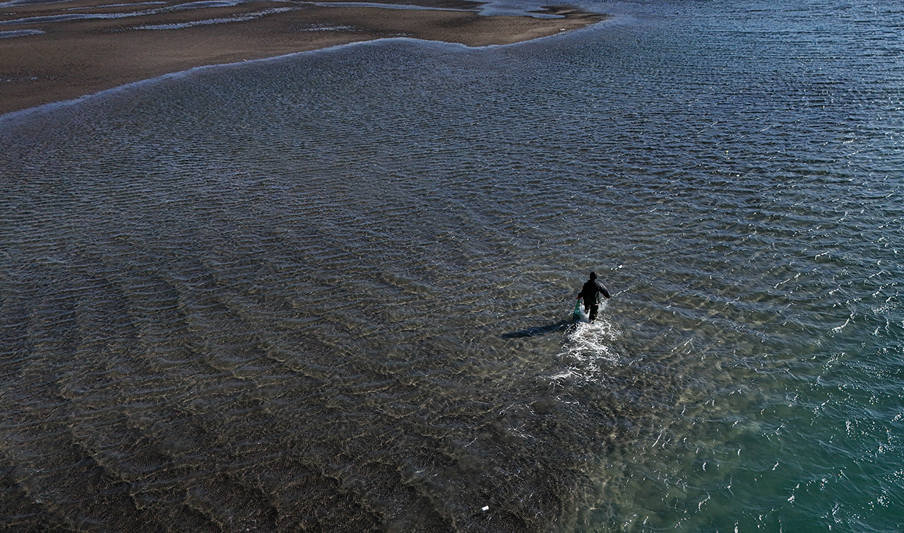 Alaçatı Mahallesinde sörf eğitmeni Çağla Kubat, neredeyse her yıl yaşanan su çekilmesinin bu kez daha fazla gözlendiğini söyledi.
