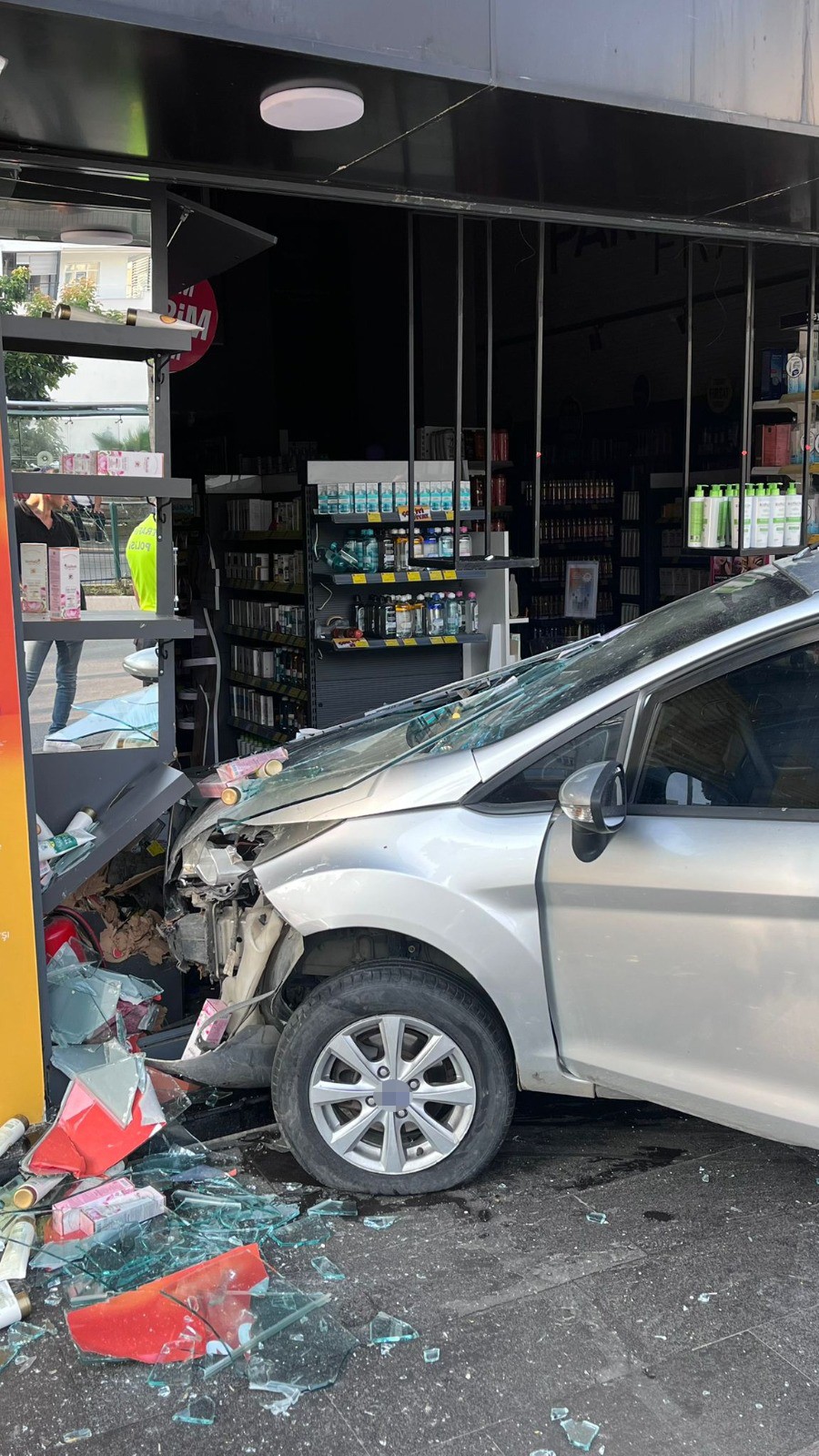 Antalya'da seyir halindeyken direksiyon hakimiyetini kaybeden araç sürücüsü, kaldırımı aşarak iş yerinin vitrininden içeri girdi. İş yerinde maddi hasar oluşurken, sürücü kazayı burnu bile kanamadan atlattı.