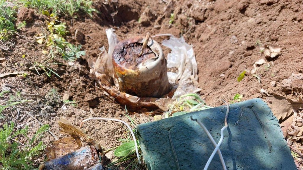 Ekipler, arazide tespit edilen taş mevzi içinde gömülü 5 kilogramlık düdüklü tencerede basma düzenekli ve fünye bağlantısı bulunan el yapımı patlayıcı ele geçirdi.