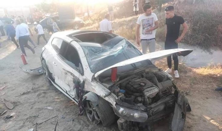 Denizli’nin Sarayköy ilçesinde düğün konvoyunda bulunan otomobil, tırın sıkıştırması sonucu refüje çarptıktan sonra taklalar atarak tarlaya uçtu. Kazada 1’i ağır 4 kişi yaralandı.