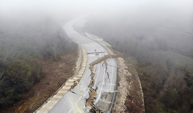 Heyelanla birlikte çöken yol kullanılmaz hale gelirken, asfalt tamamen zarar gördü. Çökmenin ardından ise yol, her iki yönlü trafiğe kapatıldı.