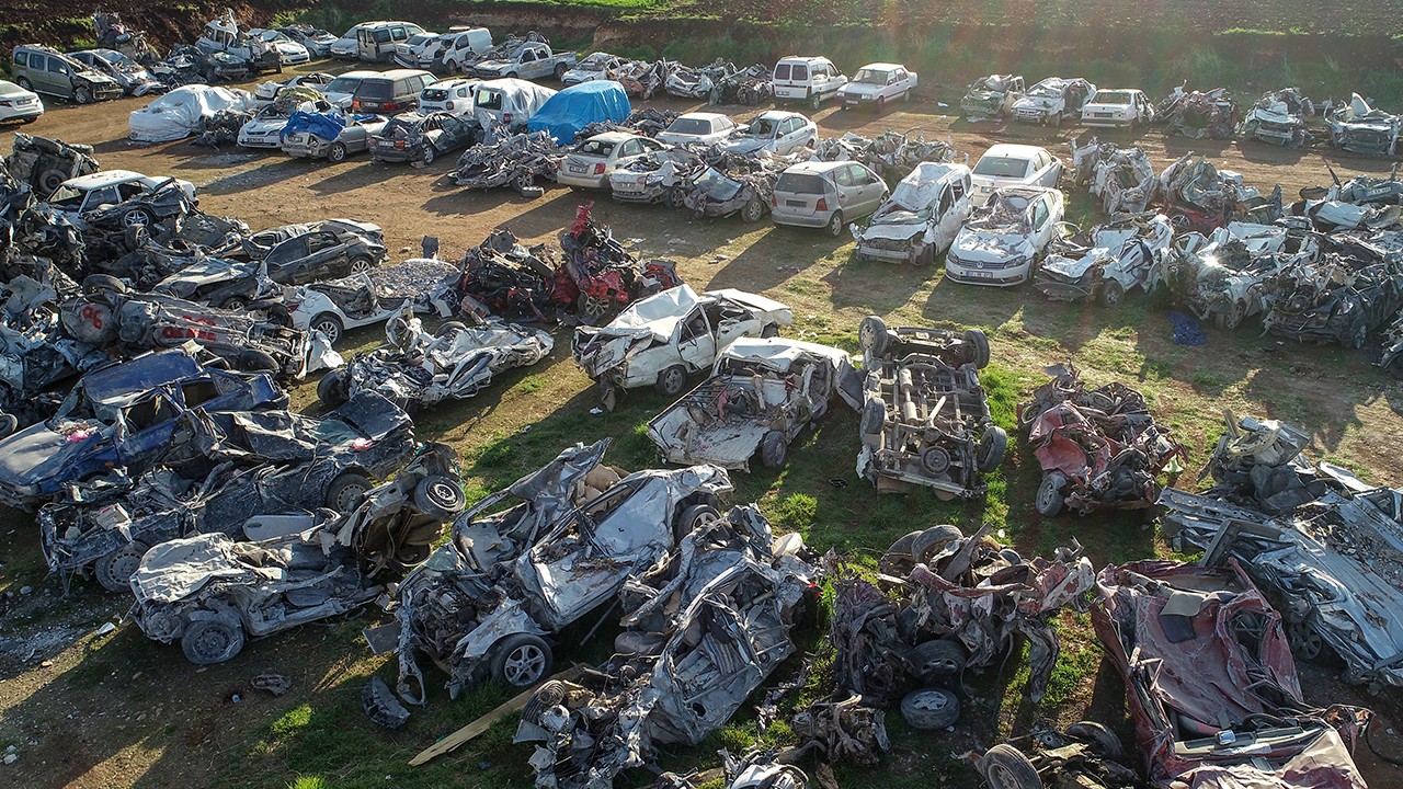 Adıyaman'da yıkılan binaların enkazından çıkarılan ve hemen hepsi hasarlı olan otomobiller kentte belirlenen üç yediemin otoparkında sahiplerini bekliyor.