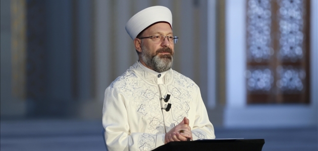 Erbaş, zorlukları ve güzellikleriyle bir yılın geride bırakıldığını, milletin salgın, deprem, sel gibi olaylara hep beraber üzüldüğünü ve bu olumsuzluklar karşısında milletçe kenetlenip mücadele edildiğini belirterek, "Ama bütün bu zorluklar ve olumsuzluklar içerisinde Rabbimizin izni ve inayetiyle, yaklaşık bir asırlık hasretin sonunda Ayasofya'nın yeniden camiye çevrilmesi ve müminlerle buluşması vesilesiyle ülkemizdeki ve dünyadaki tüm Müslümanlarla beraber büyük bir heyecan ve sevinç yaşadık." ifadelerini kullandı.