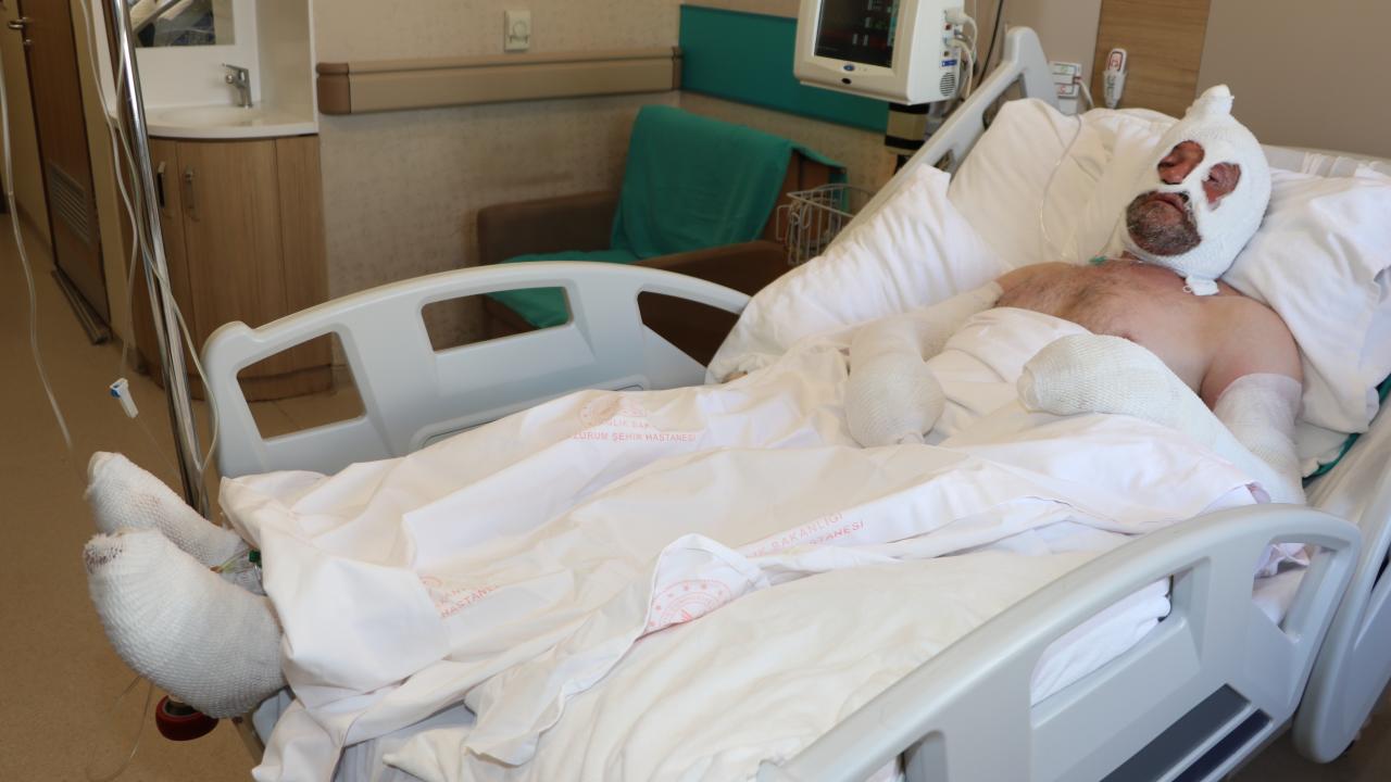 Buradaki müdahale sonrası Topal, sevk edildiği Erzurum Şehir Hastanesi Yanık Tedavi Merkezinde tedaviye alındı.