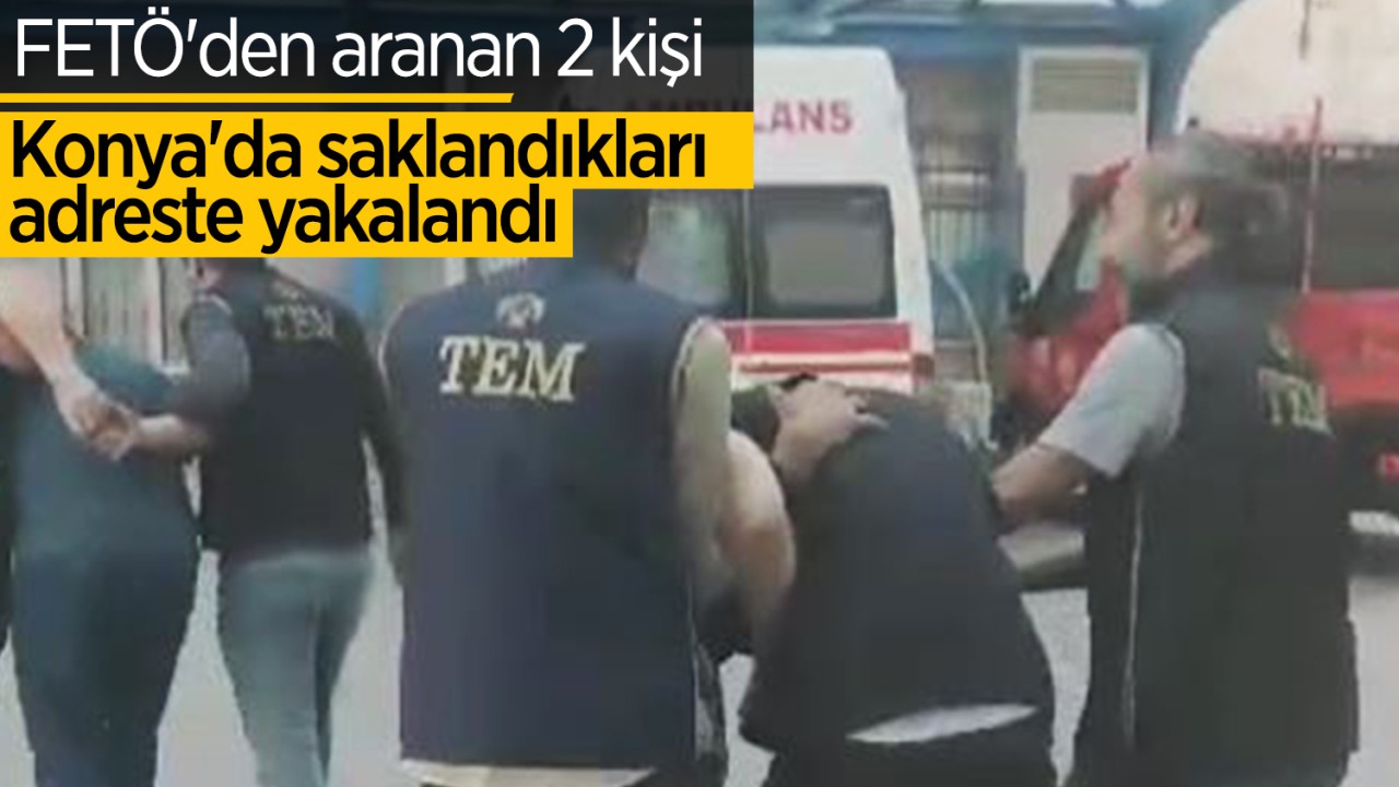 Konya İl Emniyet Müdürlüğü’ne bağlı Terörle Mücadele Şube Müdürlüğü ekiplerince aranan şahısların yakalanmasına yönelik yapılan çalışmalar kapsamında, Konya Ağır Ceza İlamat Masasınca FETÖ/PDY Silahlı Terör Örgütüne Üye Olmak suçundan 6 yıl 3 ay kesinleşmiş hapis cezası bulunan H.S.H. (43) ve 7 yıl 6 ay kesinleşmiş hapis cezası bulunan A.B. (46)’nin saklandığı adresler tespit edildi.