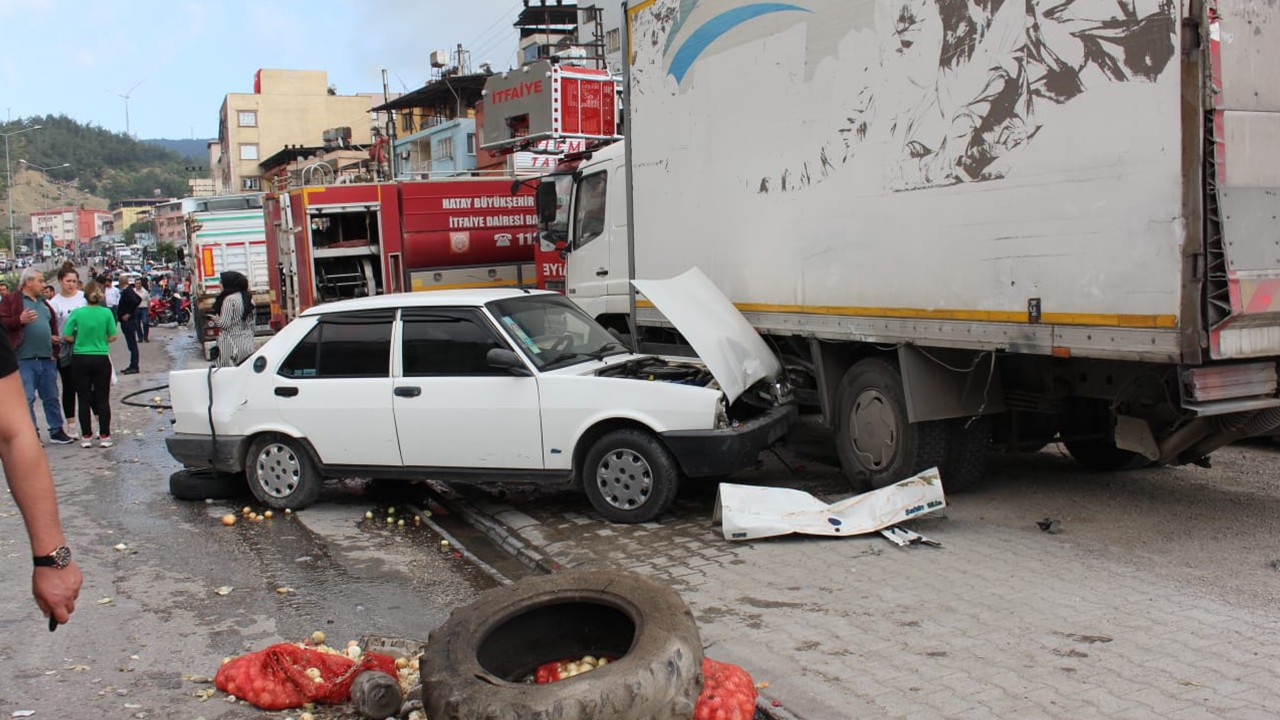 İskenderun-Antakya kara yolunda sürücüsünün kimliği henüz belirlenemeyen 31 Y 9653 plakalı sebze yüklü tır, 8 araca çarptı.