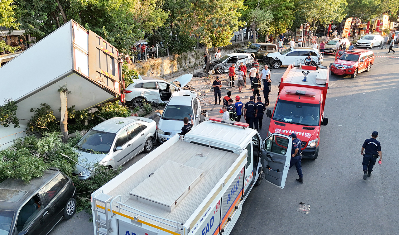 Nevşehir'in Göreme ilçesinde, freni boşalan kamyon park halindeki 10 araca çarptıktan sonra sulama kanalına düştü. Kazada 6 kişi yaralandı.