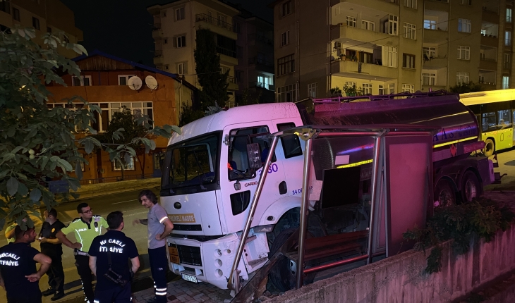 Kocaeli’nin Gebze ilçesinde freni boşalan kimyasal madde yüklü tanker, önce direğe sonra otobüs durağına çarptı. Kazada tankerin sürücüsü yaralandı.