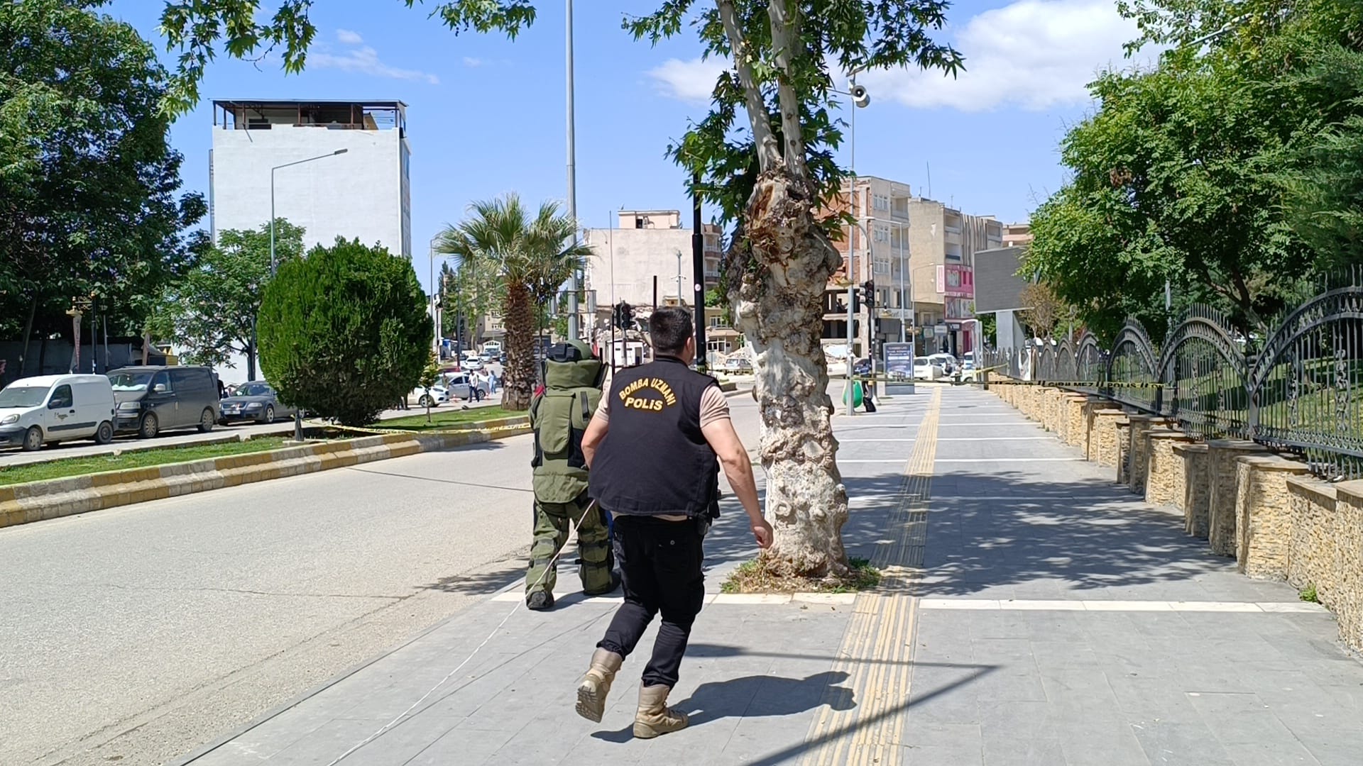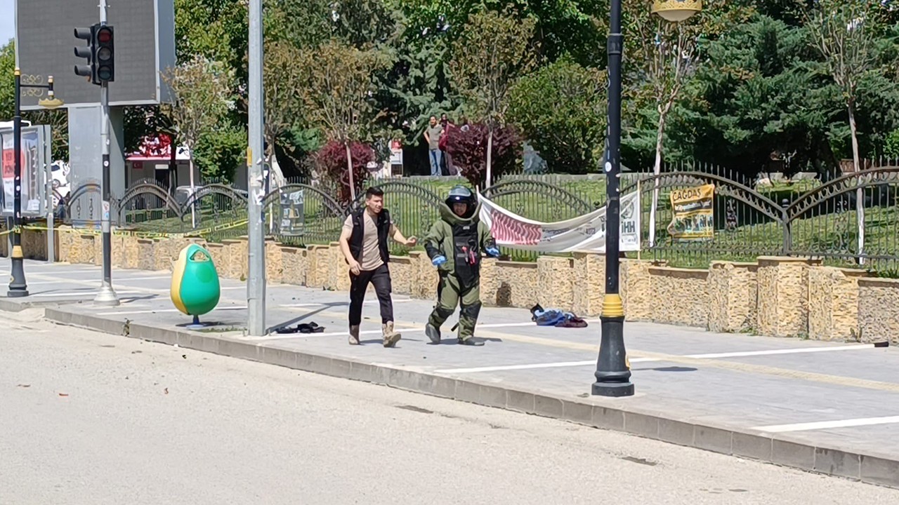 Eskisaray Mahallesi’nde öğle saatlerinde Mimar Sinan Kültür Parkı önünde kaldırımda bir sırt çantasını görenler, bomba olabileceği şüphesiyle durumu 112 Acil Çağrı Merkezi'ne bildirdi. İhbarla olay yerine gelen polis ekipleri çevrede güvenlik önlemi alarak, bomba imha uzmanına haber verdi. Bomba imha uzmanı tarafından kontrollü olarak fünye ile patlatılan sırt çantasından kıyafetler çıktı. Polis, çantayı bırakan kişinin kimliğinin belirlenmesi için çalışma başlattı.