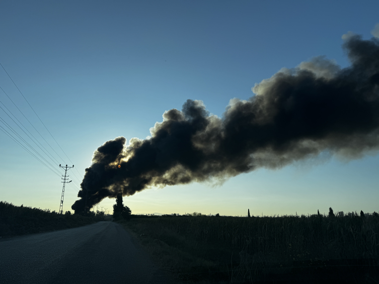 Adana'da, geri dönüşüm fabrikasında yangın çıktı. Yangını söndürmek için itfaiye ekiplerinin mücadelesi sürerken gökyüzü siyah dumanla kaplandı.