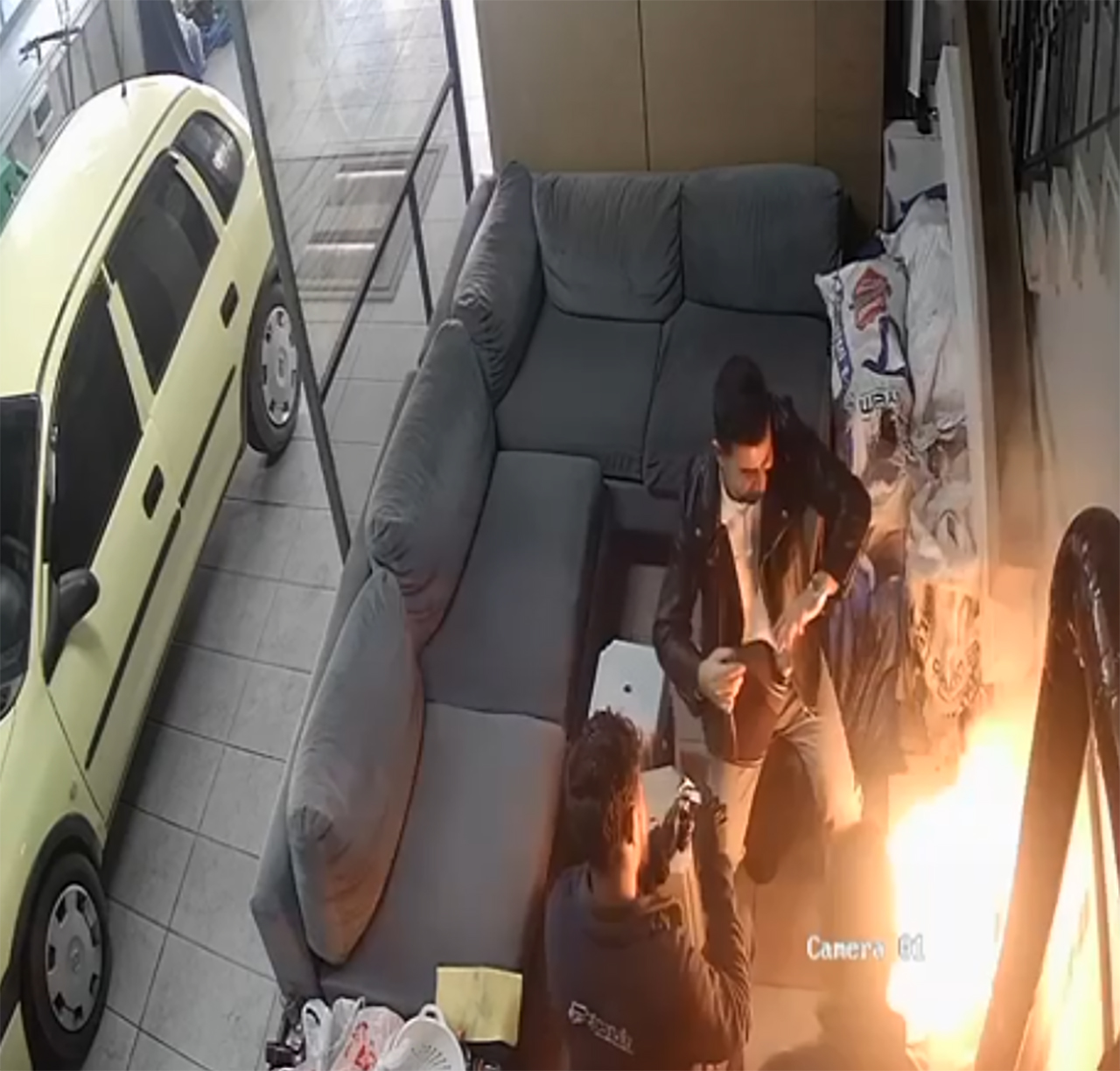 Olayda yaralanan olmazken, o anlar saniye saniye iş yerinin güvenlik kamerasına yansıdı.