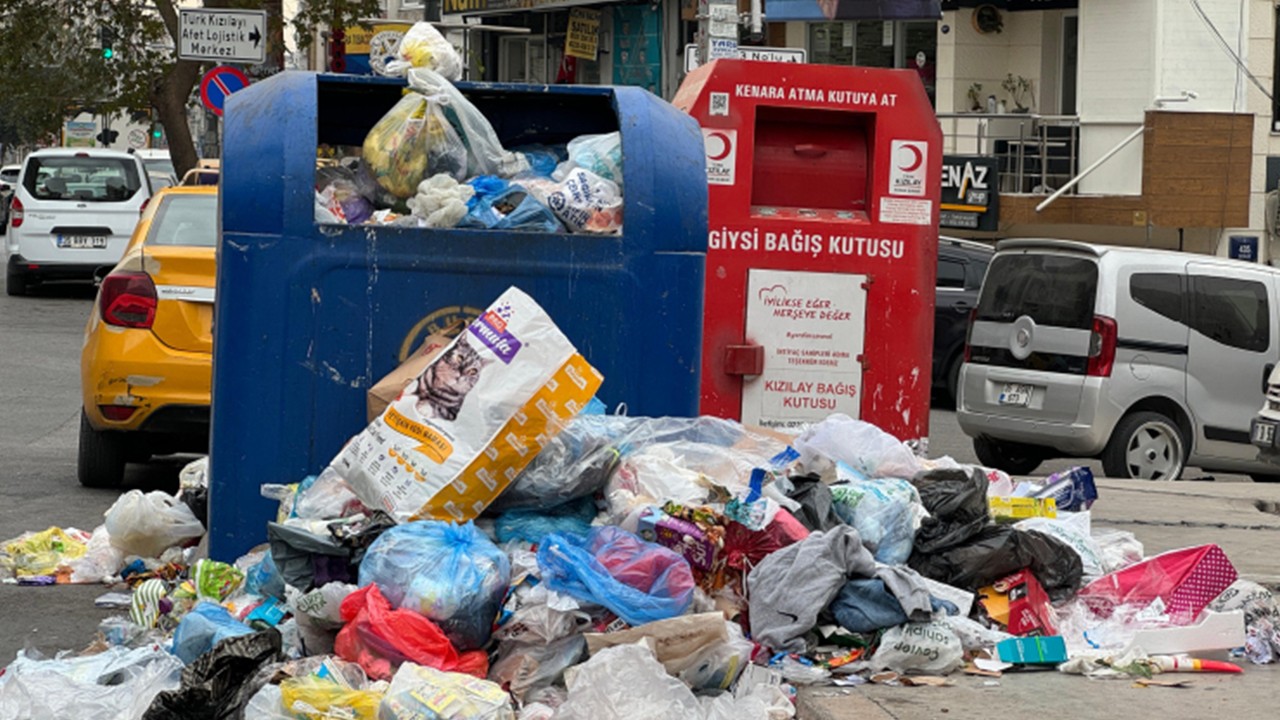Grev nedeniyle ilçe genelinde çöpler toplanmazken, cadde ve sokaklarda çöp yığınları oluştu. Biriken çöplerin kaldırımlara ve yola taştığı gözlendi. Esnaf Ali Çalışkan, grev nedeniyle 2 gündür çöplerin biriktiğini söyledi.