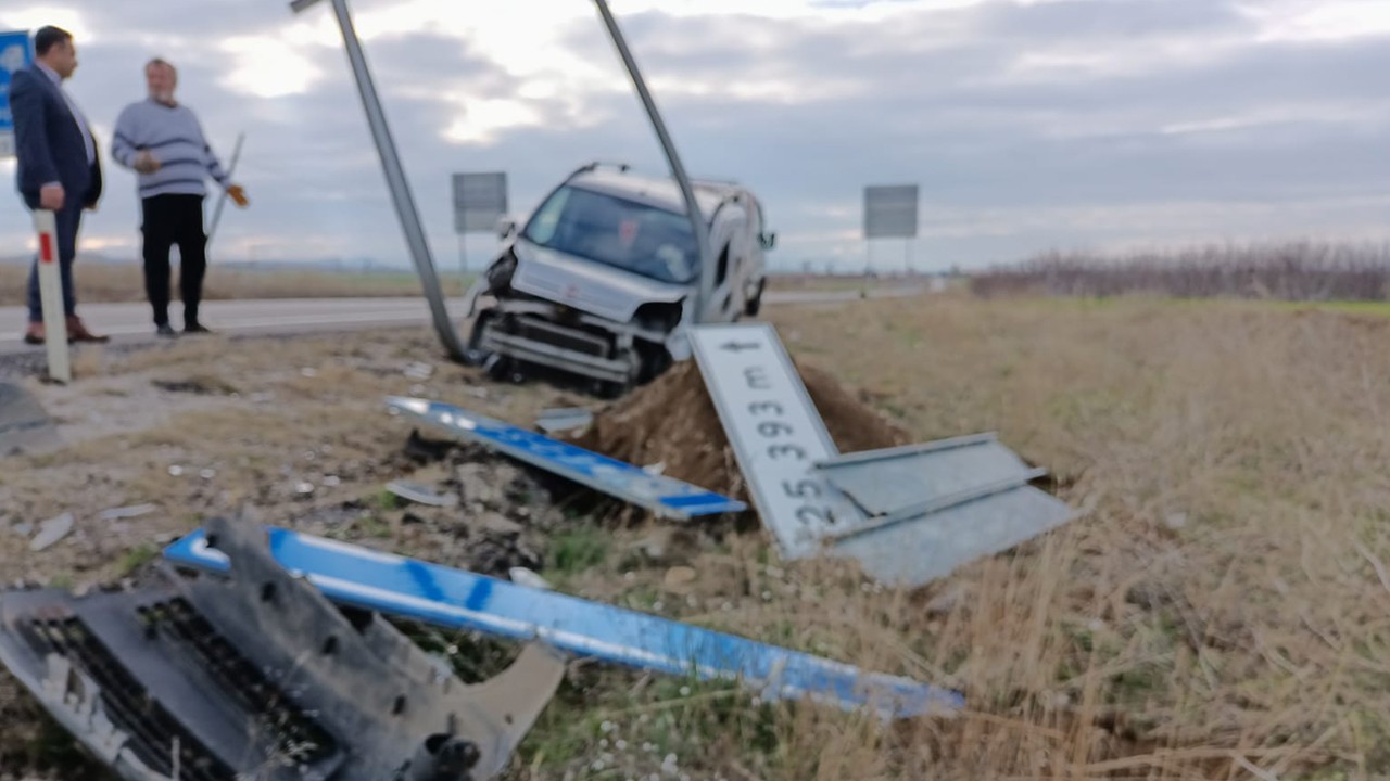 Konya'nın Hüyük ilçesinde tabelaya çarpan hafif ticari aracın sürücüsü yaralandı.