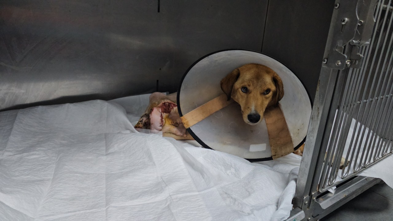Köpeğin yaralı, yavruların yeni doğmuş olarak geldiğini ifade eden Veteriner Hekim Ömer Faruk Alkan, “Röntgeni çekip muayene yaptıktan sonra yakın mesafeden ateş edildiğini, saçmaların omuriliğin içine ve vücuduna saplandığını gördük. Omuriliktekini arka tarafı felç kalacağı için saçmayı bulup çıkarttık. Omuriliğin etrafındaki kemik dokusunu serbestleştirerek oradaki sinirin baskısından kurtardık. Sonra yavrularının yanına koyduk. Bir hafta kadar fizik tedavi uyguladık ama 1 ayakta felç olduğunu gördük. Hiç his yoktu. O ayak ve kuyruğu ampute ettik. Diğer ayakta da fizik tedavisi sürüyor. Fizik tedavide lazer ve yürütme egzersizleri yapıyoruz. Şu an ilk geldiğine göre çok iyi ama uzun süre tedavi görmesi gerekecek. Yavruların durumu çok iyi sadece 1 tanesini kaybettik. O da aldığı silah yarasından olabilir. Yavrular bize yeni doğmuş şekilde geldi” dedi.