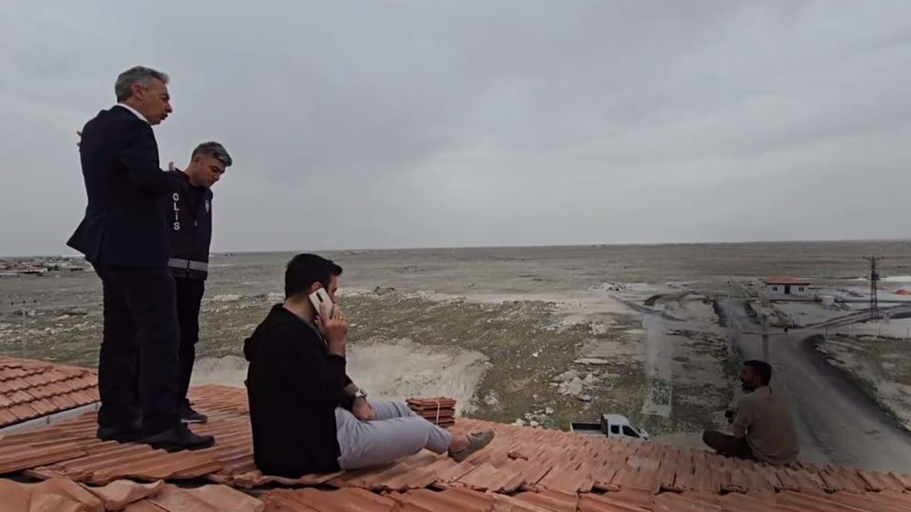 Olay Aksaray’ın Eskil ilçesi Merkez Mahallesinde meydana geldi. 5 Katlı bina inşaatının çatısına çıkan bir şahıs çevredeki vatandaşlar tarafından fark edildi.