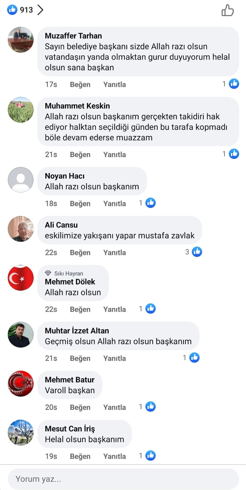 Olay sonrasında Belediye Başkanı Mustafa Zavlak vatandaşın takdirini kazandı. Eskil Belediye Başkanı Mustafa Zavlak’ın, bu tavrı sosyal medya da büyük beğeni topladı.