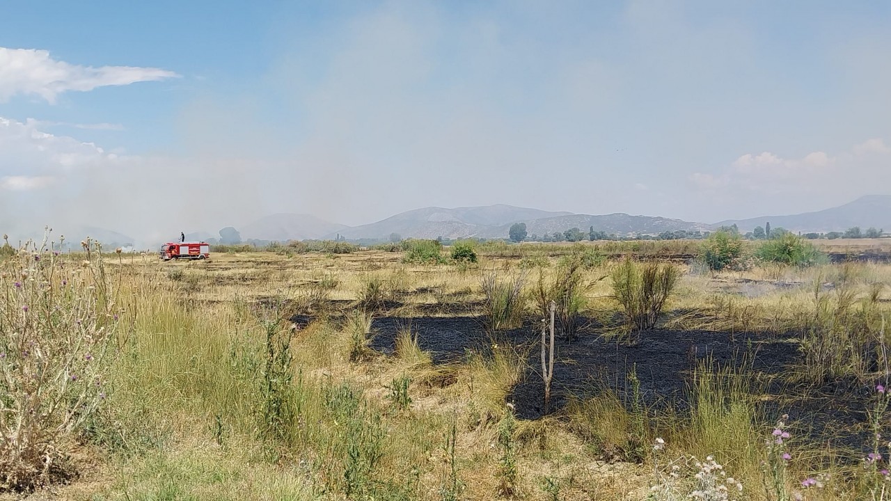 Konya'nın Hüyük ilçesindeki otluk alanda çıkan yangın büyümeden söndürüldü.