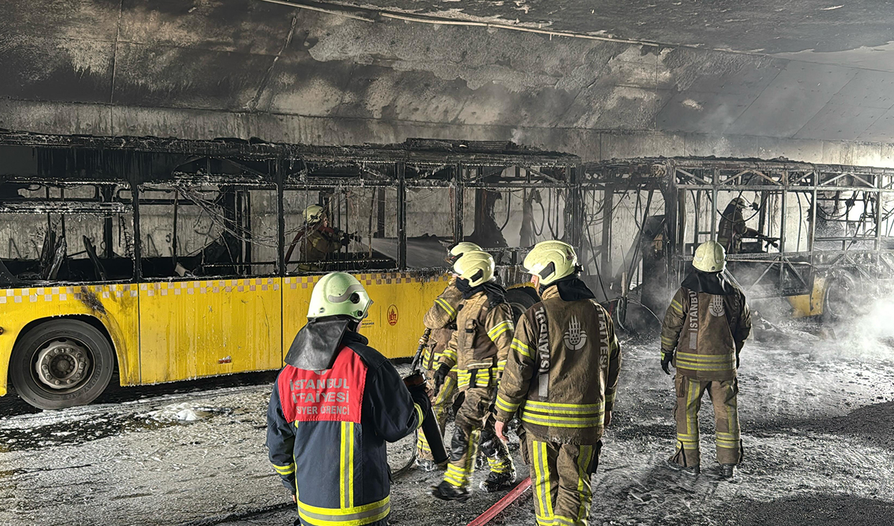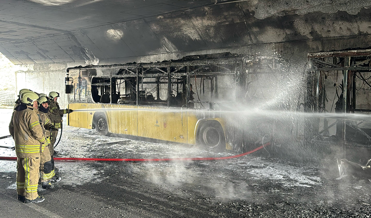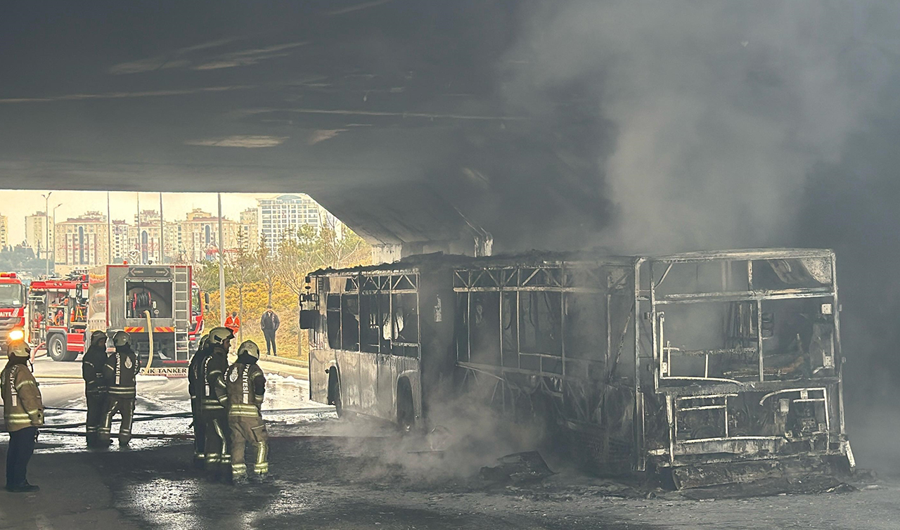 İstanbul'un Başakşehir ilçesinde içinde yolcuların bulunduğu İETT otobüsü, seyir halindeyken çıkan yangın sonucu kullanılamaz hale geldi.