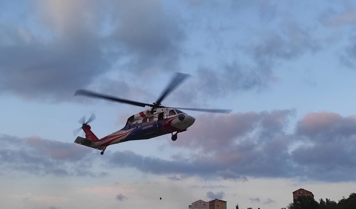 Sinop’un Türkeli ilçesinde, sel felaketi nedeniyle içme suyu hattında tahribat oluşan köye helikopter ile içme suyu boruları taşındı.