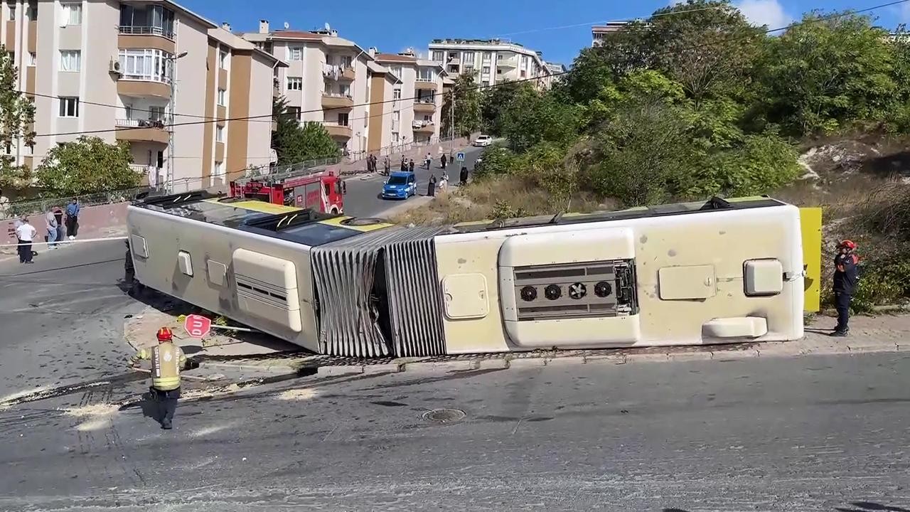 Güvercintepe Mahallesi Yeşilyurt Sokak'ta seyir halindeki İETT otobüsü, sürücüsünün direksiyon hakimiyetini kaybetmesi sonucu devrildi.