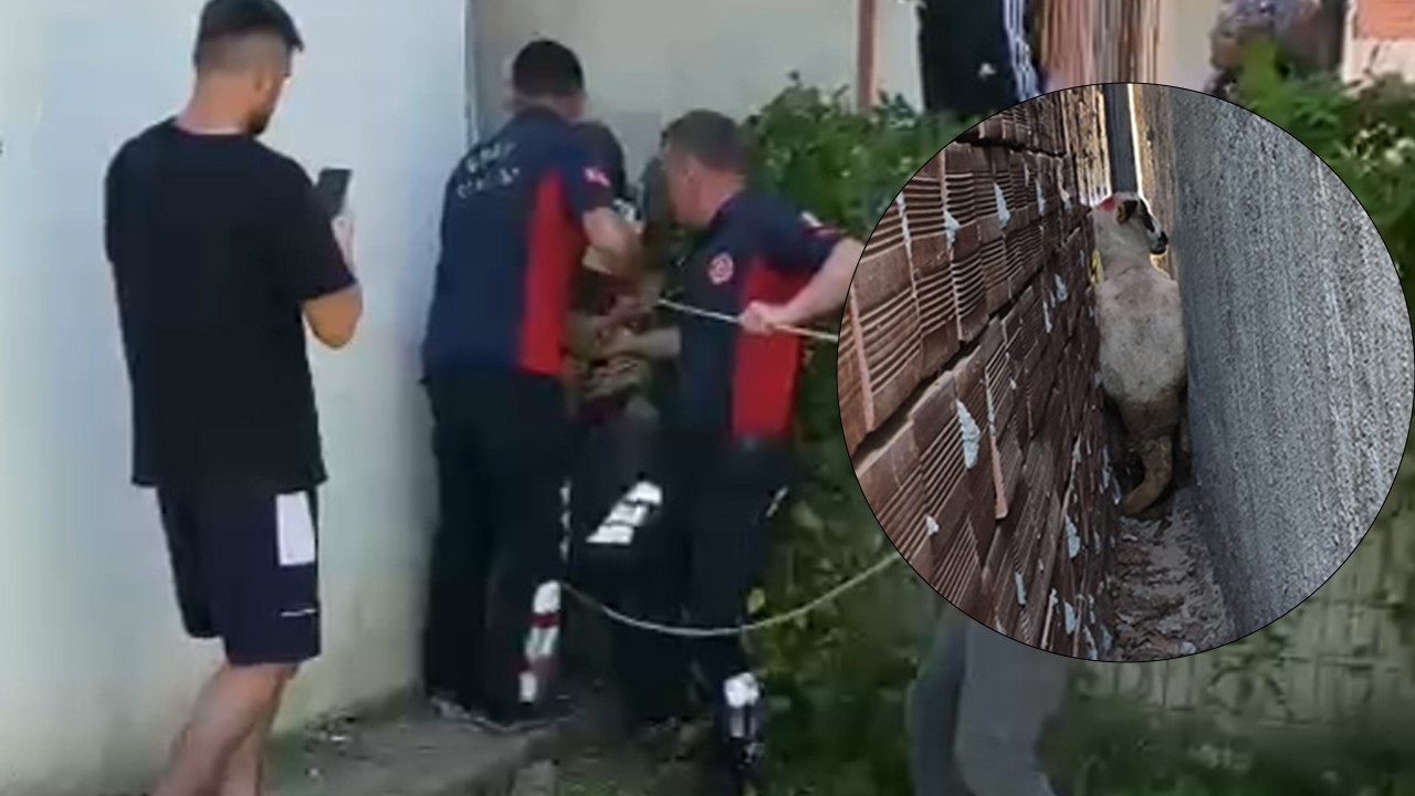 Tokat’ın Erbaa ilçesinde sahibinin elinden kaçan kurbanlık koyun iki binanın duvarı arasına sıkıştı. Koyunu itfaiye ekipleri bulunduğu yerden çıkartarak sahibine teslim etti.