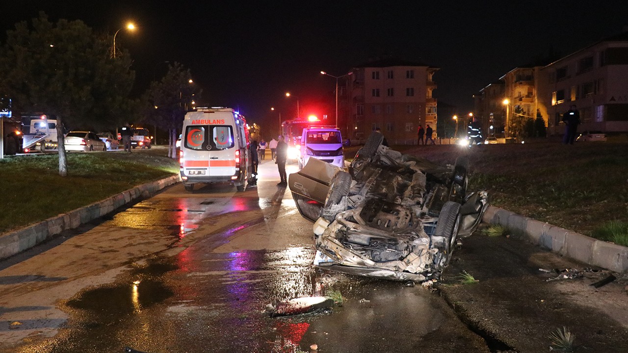 Çarpmanın etkisiyle Erkan K'nın kullandığı otomobil, kontrolden çıkarak yol kenarındaki ağaçlara çarptıktan sonra devrildi.