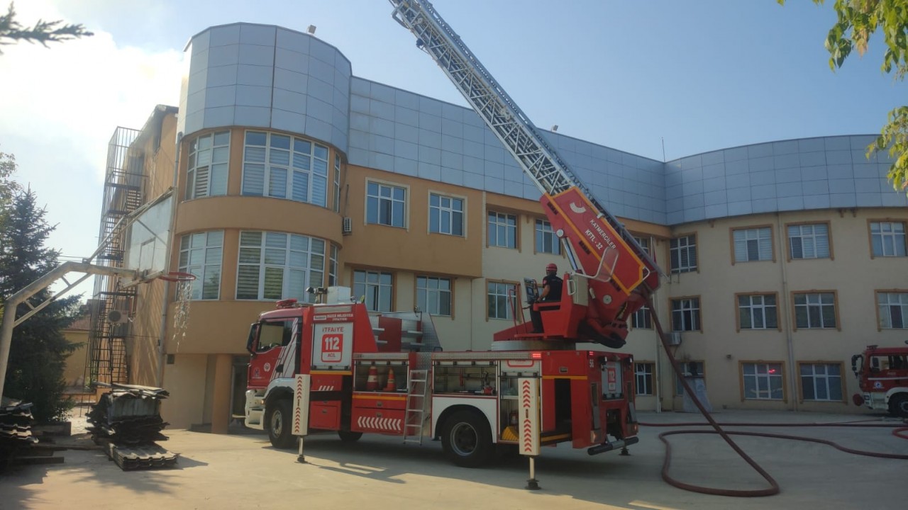 Düzce'de, imam hatip lisesinin çatısında onarım yapıldığı sırada çıkan ve binaya sıçrayan yangın, itfaiyenin çalışmasıyla söndürüldü.