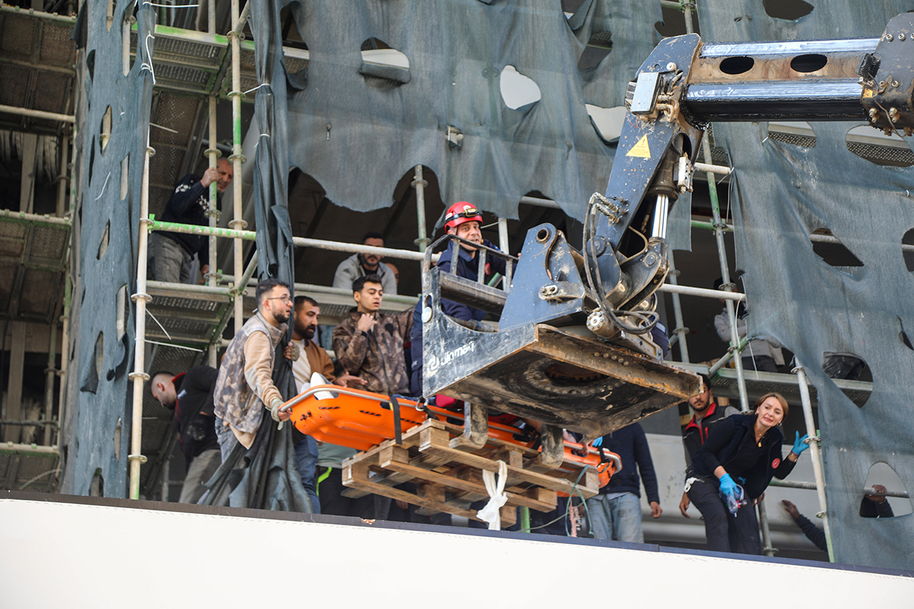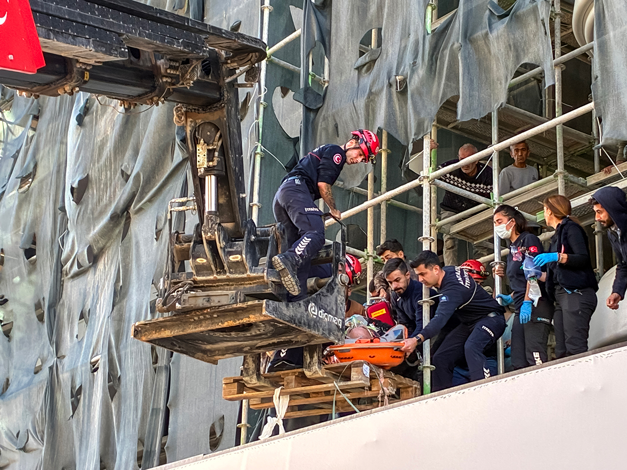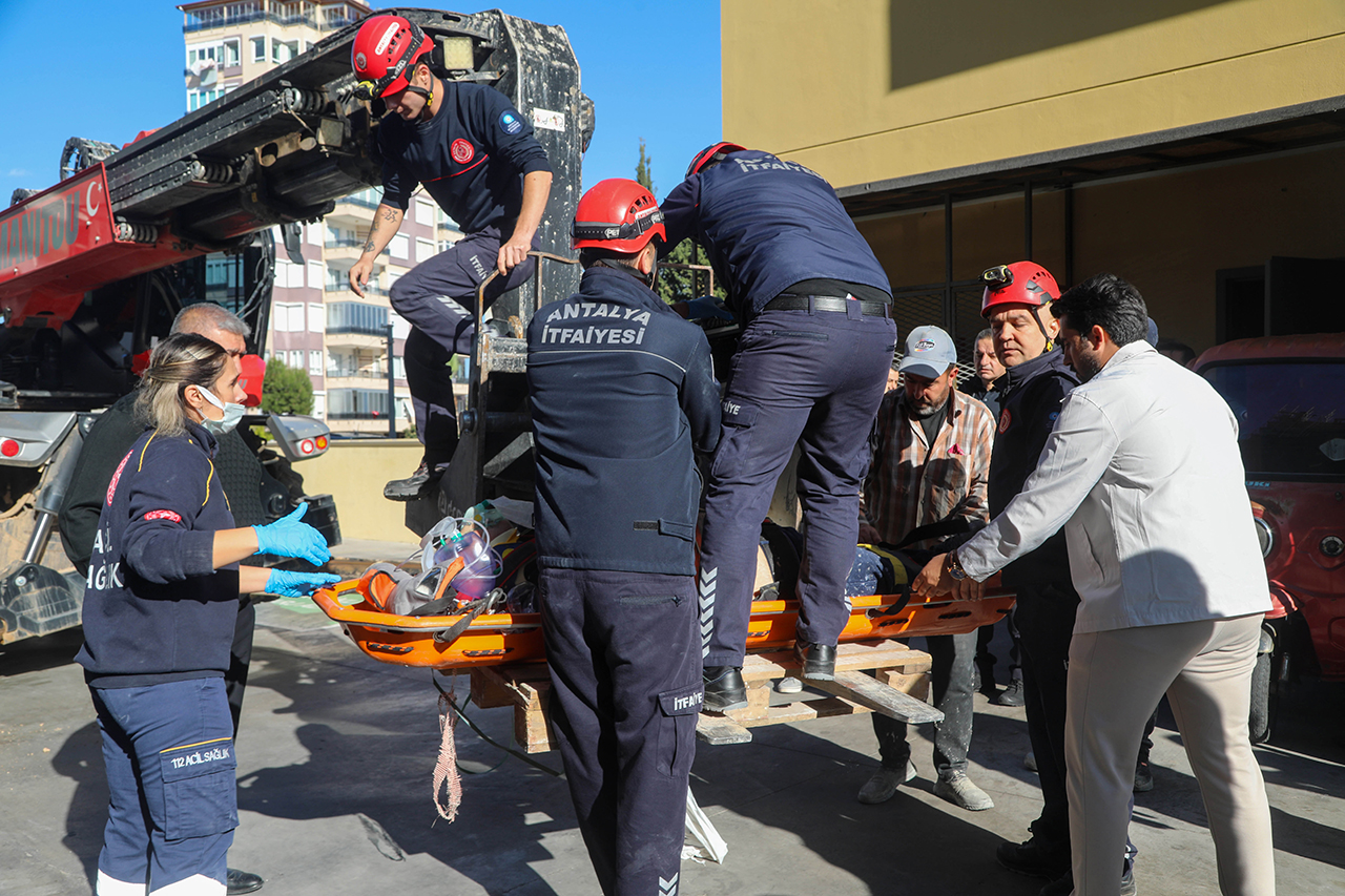 Kayhan'ın üzerinde olduğu sedye iş makinesinin kepçesine alınarak, aşağı indirildi. Kayhan, Antalya Eğitim ve Araştırma Hastanesi'ne kaldırılarak tedaviye alındı. Olayla ilgili soruşturma başlatıldı.