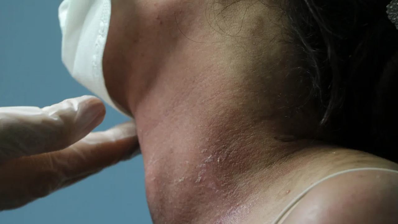 Prof. Dr. Özkol, "Lekeden kurtulayım derken daha ciddi lekelerle karşılaşılıyor. Hastanın özellikle boyun ve kollarındaki yaralarından kaynaklı iz kalabilir. Şu an nemlendirici ve koruyucu kremlerle tedavi uyguluyoruz. Tüm halkımız bilsin ki; özellikle yurt dışından getirilen kremleri lütfen yüzünüze sürmeyin. İçeriğine baktık; yoğun miktarda kojik asit içeriyor.