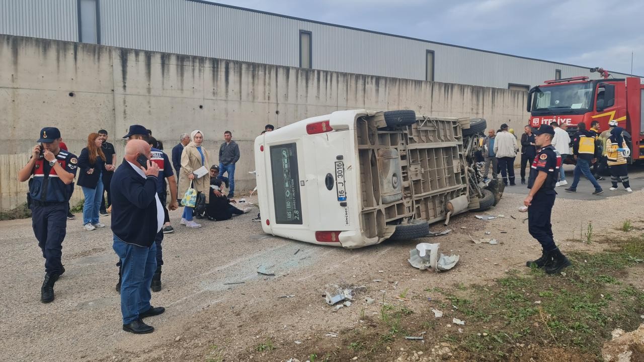 Mevlüt Karakurt yönetimindeki işçi servisi, İnegöl Hamzabey Organize Sanayi Bölgesi'nde devrildi.