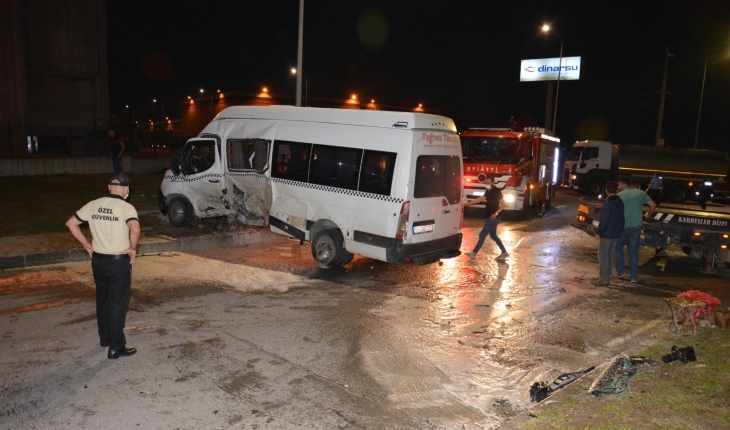 Sürücülerinin ismi henüz öğrenilemeyen servis minibüsü ile otomobil Çerkezköy Organize Sanayi Bölgesi Sanayi Bulvarı üzerinde çarpıştı.