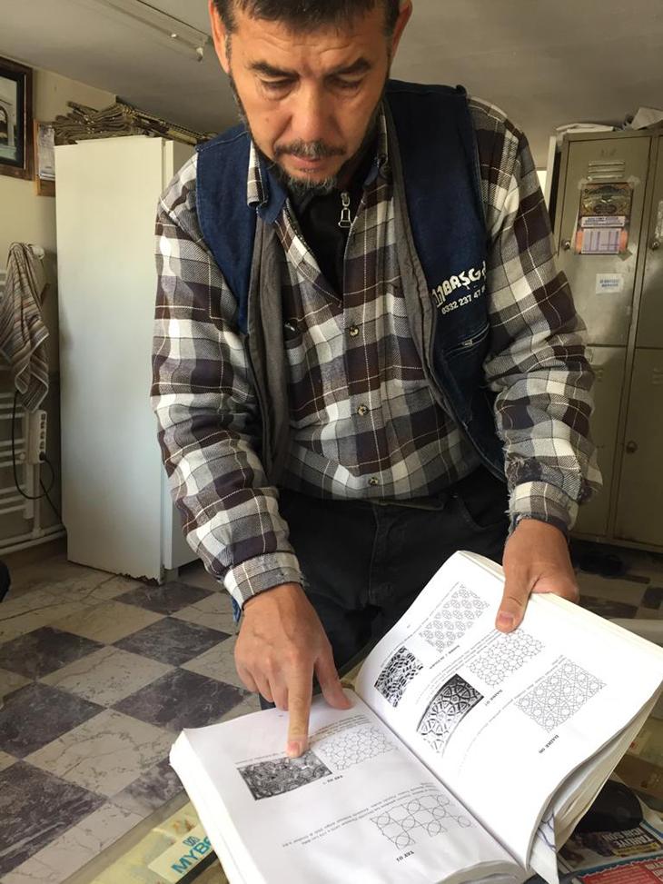 Dündar, şöyle konuştu: "İşlerimizde makina kullanmıyoruz, tamamen elle çalışıyoruz, el işlemesi yapıyoruz. Çeşitli restorasyonlar yaptık. Mesela burada Konya Karapınar'daki Selim Sultan Külliyesi, Adana Ağa Camisi, Mevlana Türbesi, Konya Çifte Kümbetler, Konya Alaaddin Camisi, Sırçalı Mescit olmak üzere daha çok ustaların işin içinden çıkamadığı yerlerde. Her ustanın yapamadığı türdeki işlerde genelde bizler devreye giriyoruz. Bize projeler gelir, el işlemeleri hazırlanır, ustalar gider montajını yapar."