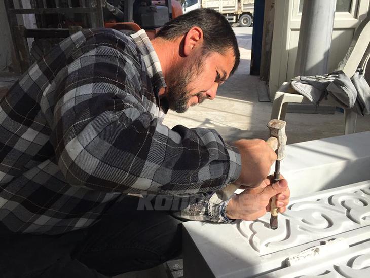 Taş ustası Reşat Dündar, Konya'daki atölyesinde yaptığı işi, "Bu iş tamamen el yapımı, el işlemeciliği 'göz nuru' dediğimiz sanatın konuştuğu yerdir." diye tanımladı.