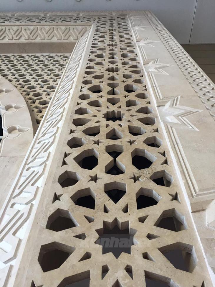 İşlerinde tamamen geleneksel İslam taş işleme sanatından faydalandığını belirten Dündar, ağırlıklı olarak Selçuklu ve Osmanlı mimari yapılarında yer alan geometrik süsleme şekillerini kullandığını söyledi.