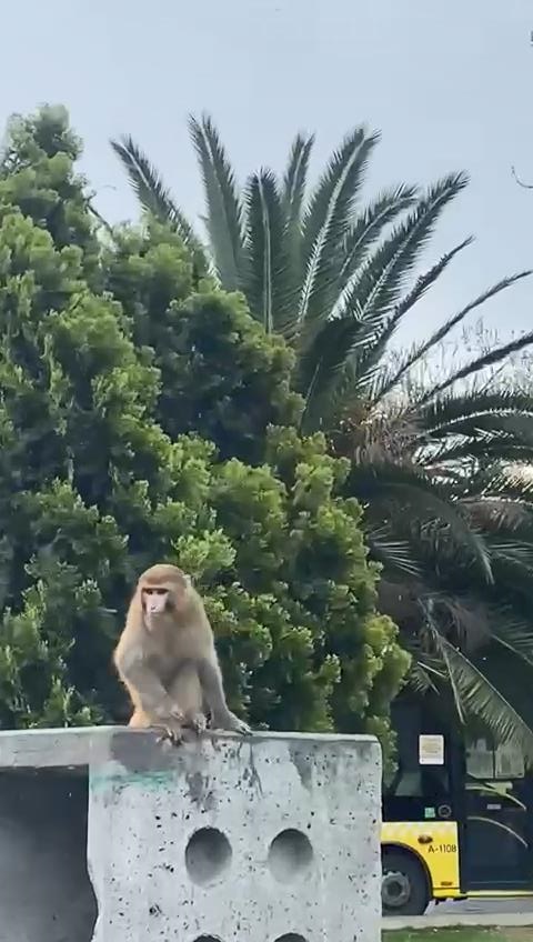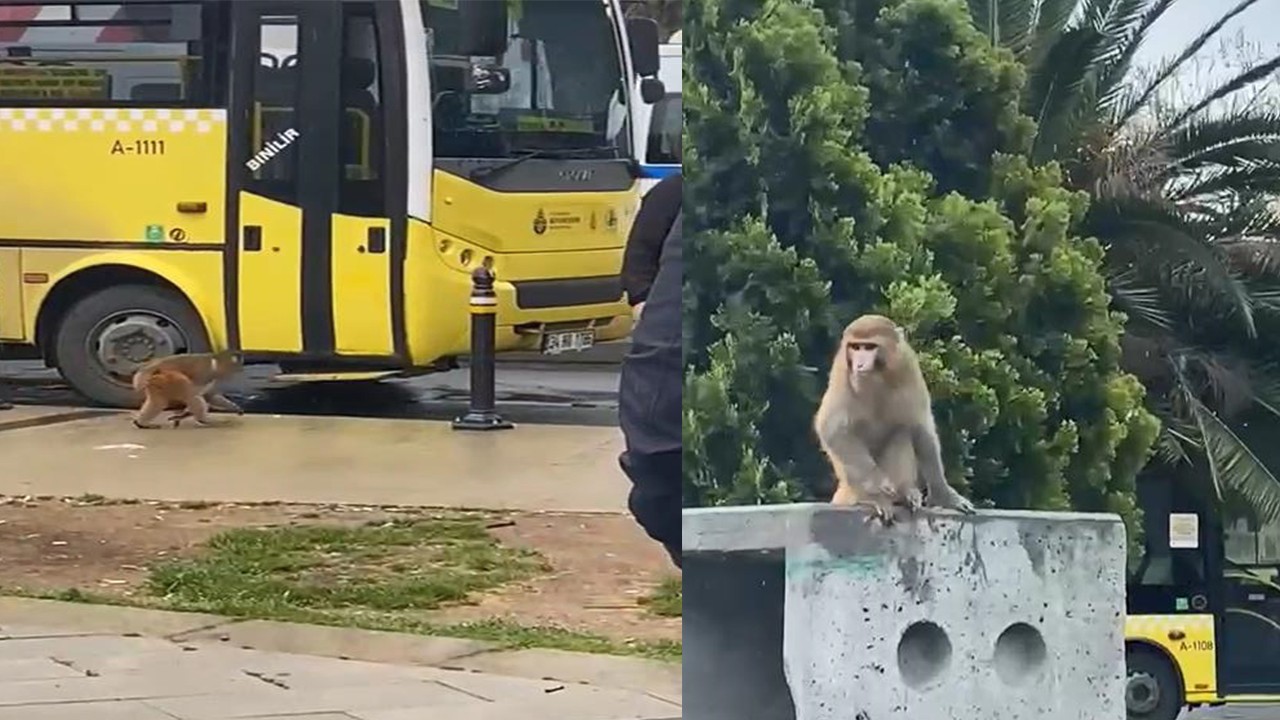 Olay, dün öğle saatlerinde Fatih Balat'ta meydana geldi. Toplu taşıma araçlarından inen vatandaşlar bir parke taşının üstünde duran maymunu gördü.